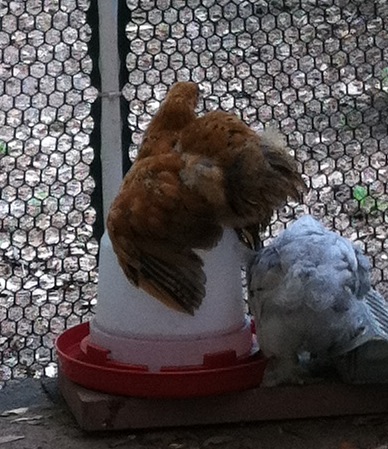 After a late afternoon spent in the yard, even the chickens are so relaxed they are ready to go to bed early.